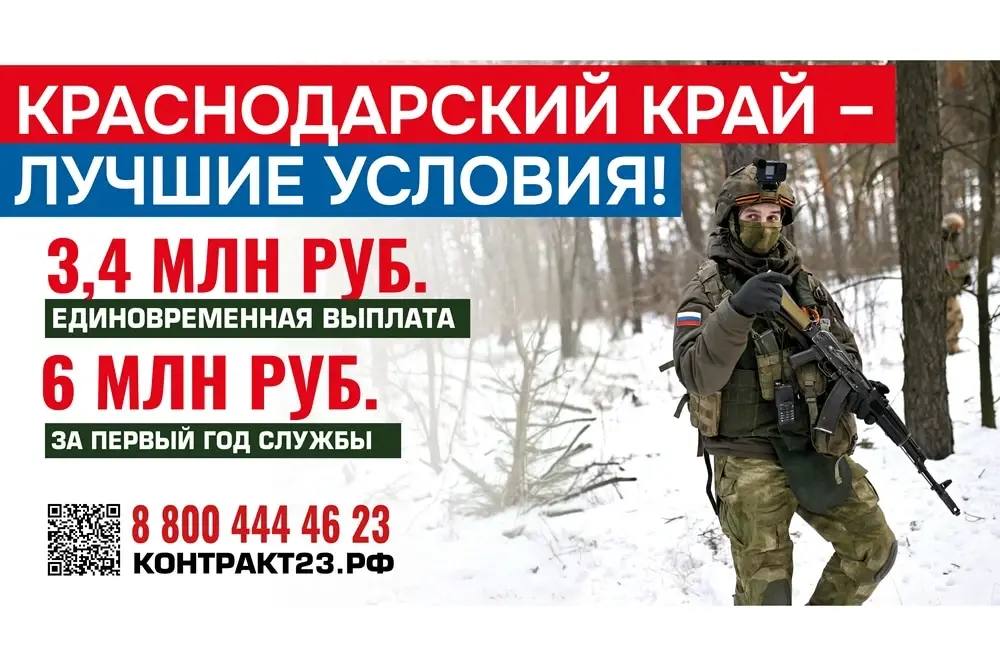 Только за первый год службы в зоне СВО – после заключения контракта от любого муниципалитета Краснодарского края – военнослужащие получат 6 млн рублей.